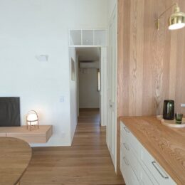 芦屋市のMT様邸では内装工事が進んでいます。 木部の塗装が終わってから壁紙下地のパテ処理を行いました。 石膏ボードの継ぎ目やビス頭にパテを埋めてサンドペーパー...