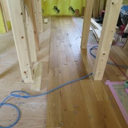 播磨町のKu様邸では大工さんの作業もほぼ終わり、内装工事が始まりました。 洗面台は実験室シンクを使用する為、大きな穴を開けた天板に補強の無垢板を取り付けていま...