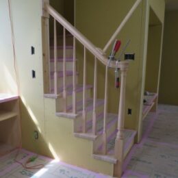 神戸市垂水区のY様邸では大工さんの造作工事がほぼ終わり、内装工事が始まっています。 昨年末に遡りますが大工さんと階段の上り口に設ける木製スリット手摺の確認を行...