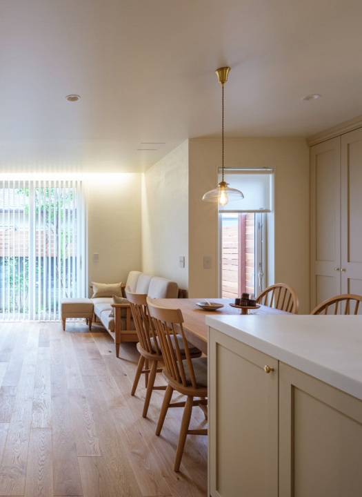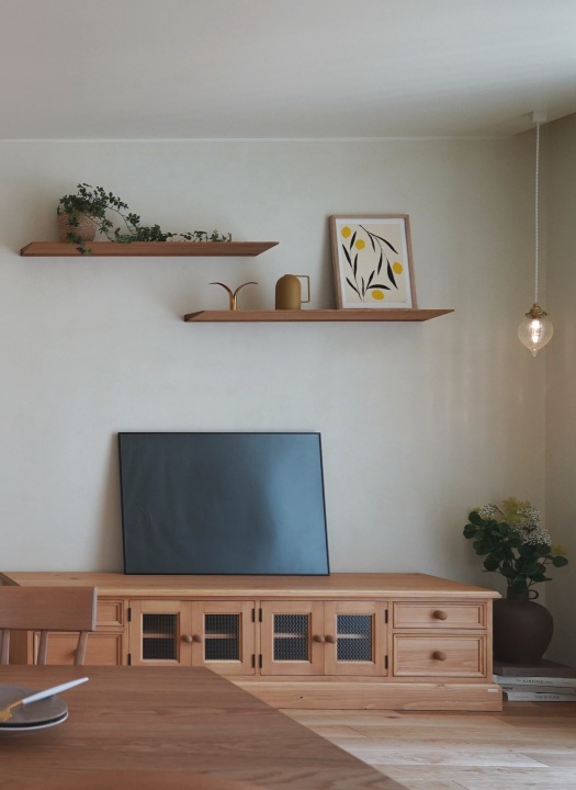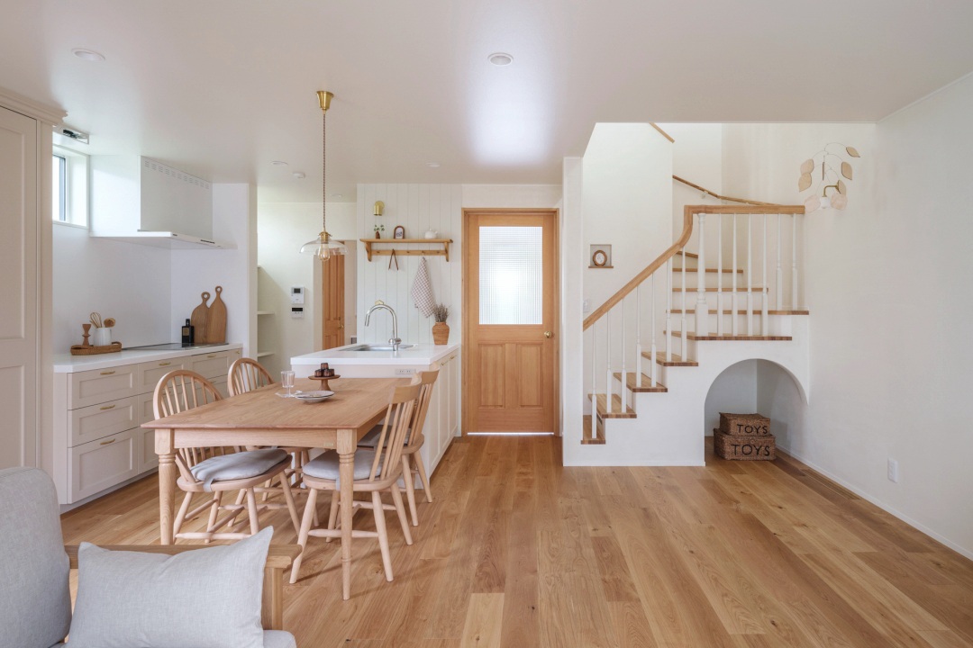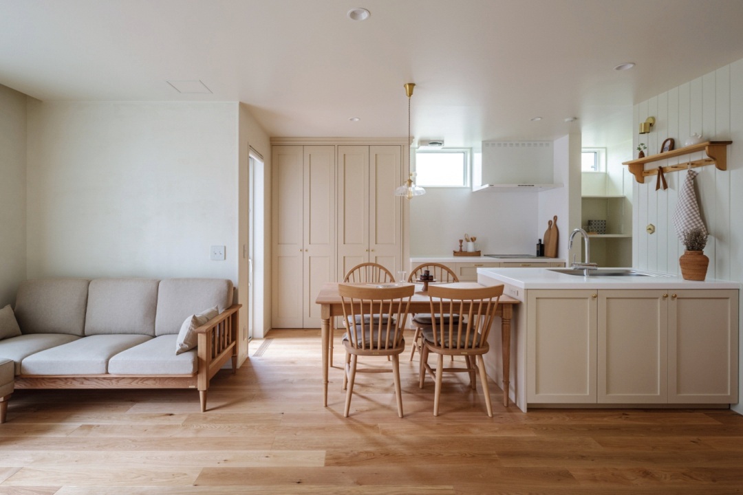 「ベージュ×木の色×アイボリー」のトーンで統一し、どこを切り取っても優しく、柔らかなインテリアに仕上げました。