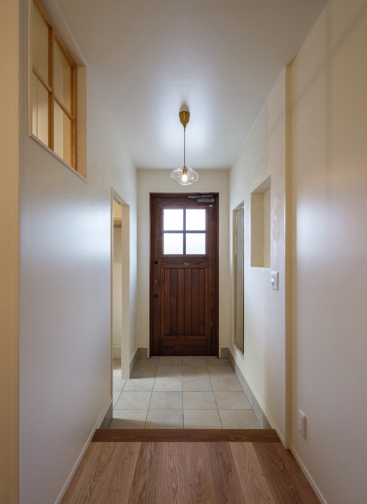 玄関横に設けた土間クロークは、靴はもちろん、ベビーカーやアウトドア用品もそのまま収納できる大容量の広々スペース。アウターを掛けられるハンガーパイプも備えました。